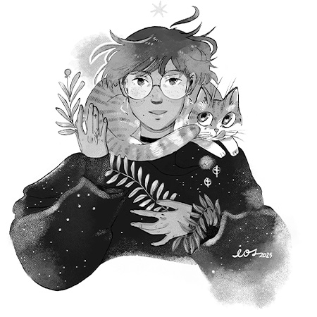 Es artista visual especializadx en ilustración y educadorx por el arte. Publicó en +Track anthology vol 1, (Blackbird Ediciones). Desde 2014 participa en ferias y festivales de arte, cómic e ilustraciones y publica varios fanzines. Ha trabajado como colorista de cómics y está terminando su libro álbum y el webcomic Smiling In Between como autorx integral. En 2023 publica en Webcomic Mutante La hermandad de las flores, que tendrá su publicación en papel en 2026 por Estudio Mafia.