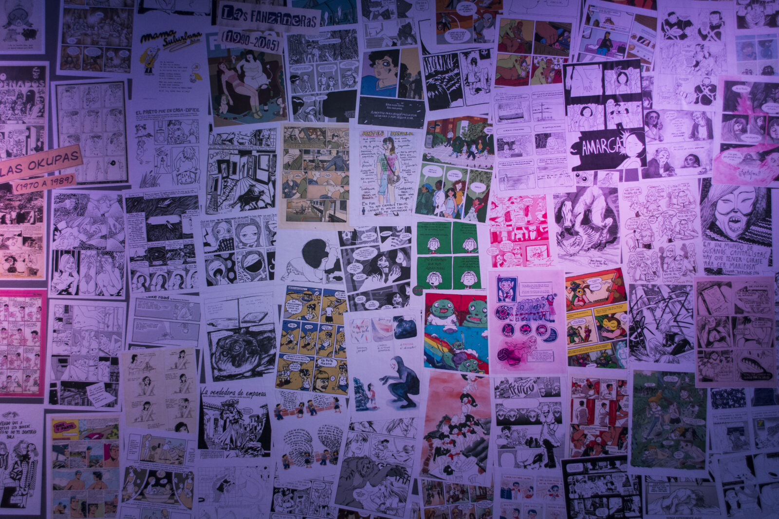 En el marco de la 14° Feria de Editores realizamos una reconfiguración de la muestra Nosotras Contamos, empapelando una pared del Complejo Art Media con obras que forman parte de este archivo. La intervención, en el primer piso, invitaba al público a descubrir e identificar a las distintas autoras, muchas de las cuales se podían encontrar en las publicaciones de la feria, estableciendo un diálogo activo entre lo publicado y lo exhibido.